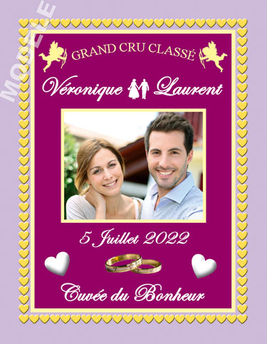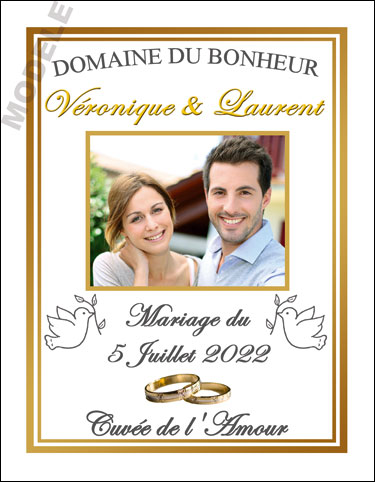 Personnaliser votre mariage avec une note d’originalité en illustrant vos bouteilles de vins avec des étiquettes personnalisées. Nos étiquettes de vins sont imprimées sur de l’adhésif. Elles sont autocollantes.